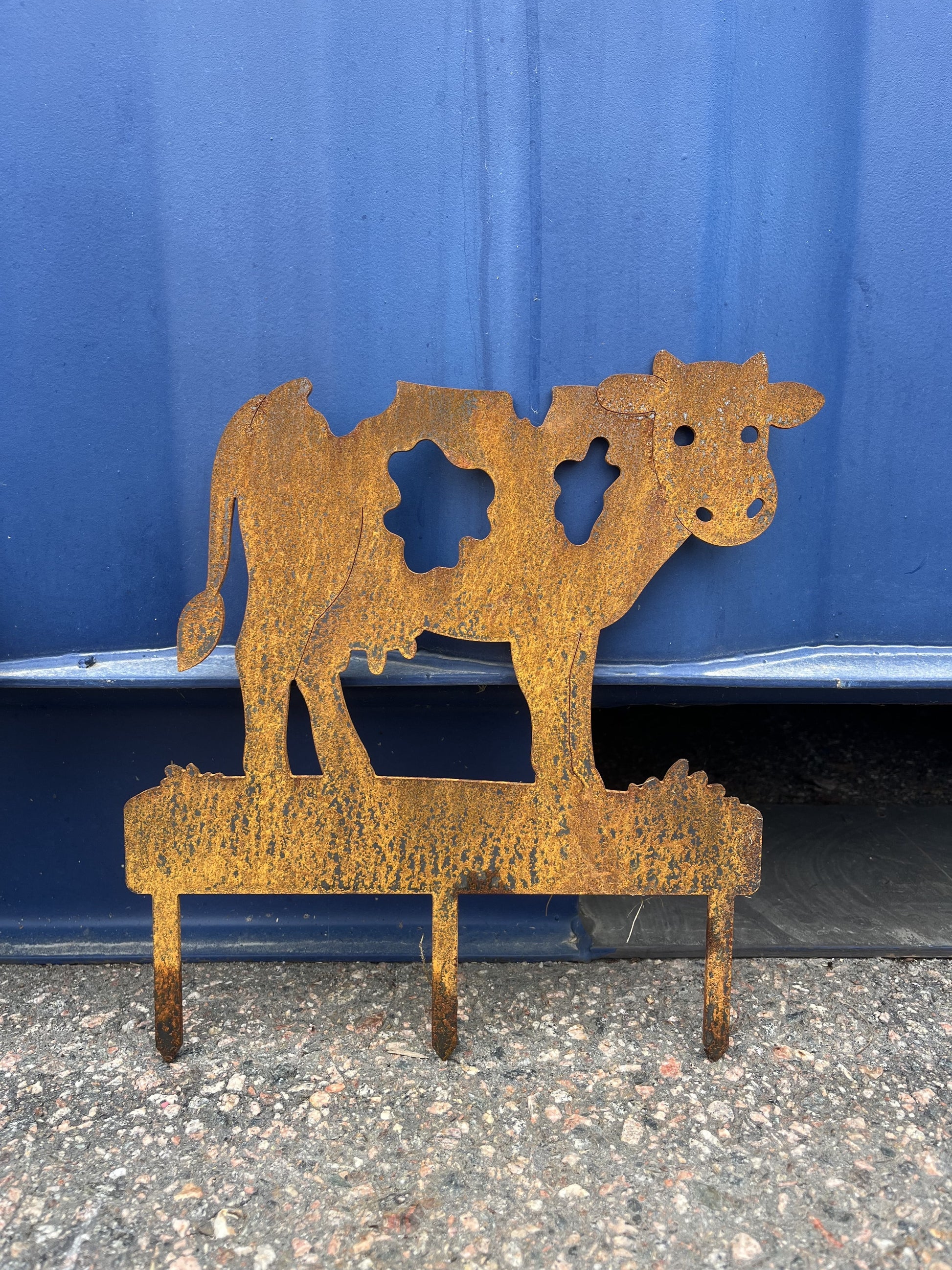 This lovely metal cow is perfect for your garden beds and large flower pots. Made out of a hardy rusted metal, it will bring joy to your garden for years to come. Just watch out she doesn't eat your flowers!