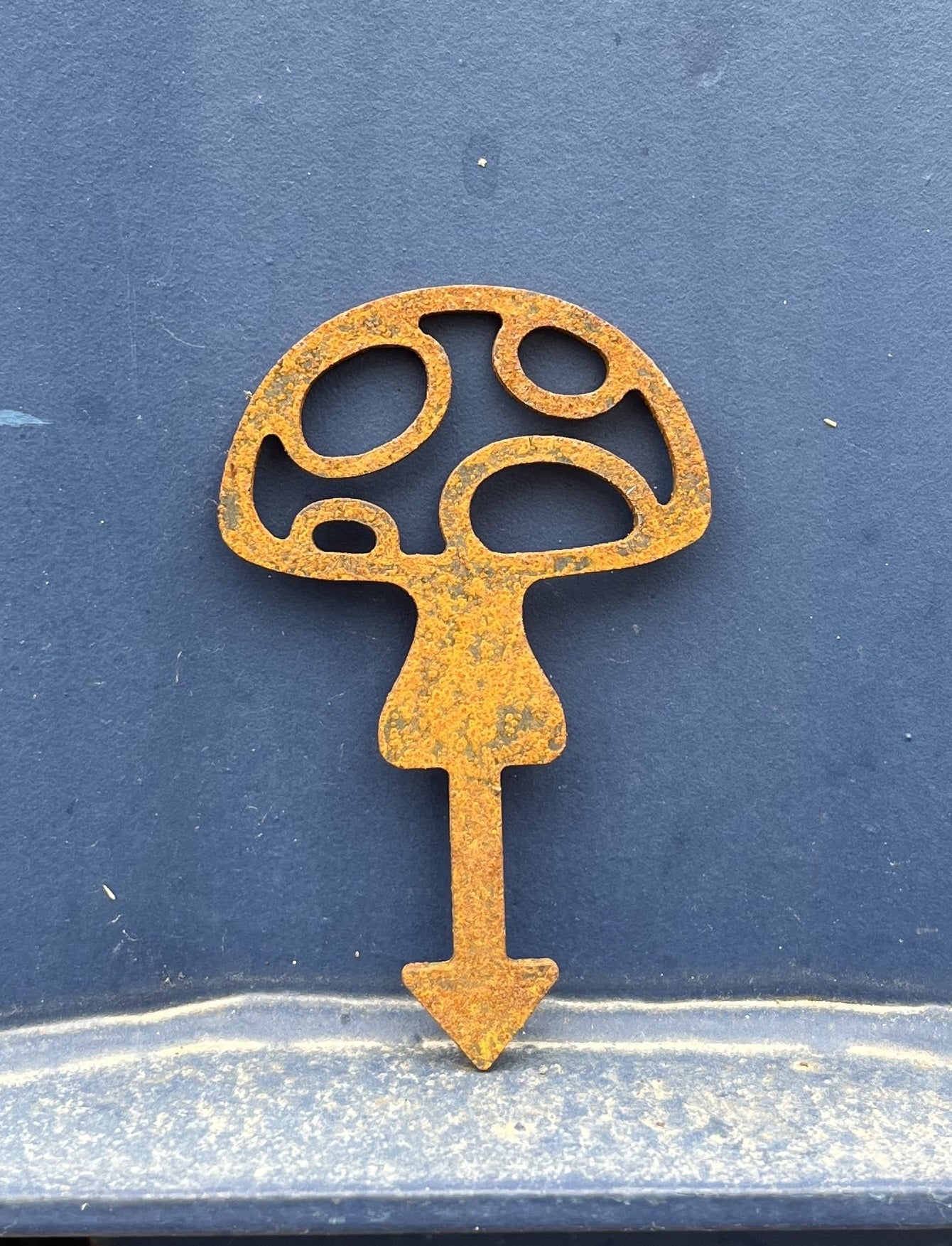 En söt liten svamp gjord av metall. Den kommer att passa perfekt i dina krukväxter inomhus eller utomhus, och är gjord för att rosta med tiden för den perfekta rustika looken.